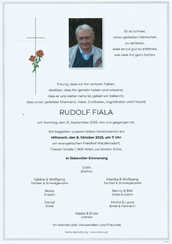 Mit großer Betroffenheit müssen wir euch mitteilen, dass unser geschätztes Ehrenmitglied Rudi Fiala am 21. September 2025 im Alter von 83 Jahren im Kreise seiner Familie verstorben ist.